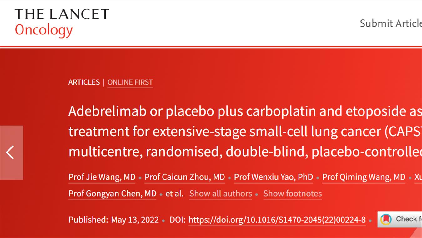 利来w66卡瑞利珠单抗联合阿帕替尼最新研究成果荣登《柳叶刀·肿瘤》